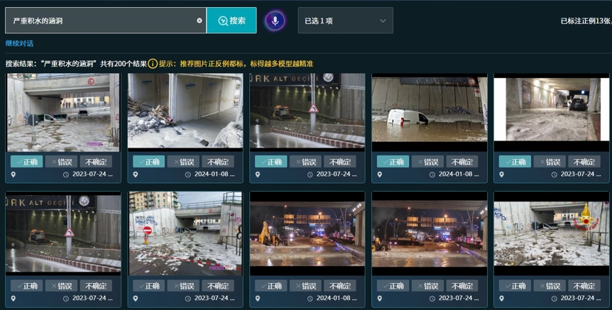 (上图示例:城市摄像机对“严重积水的涵洞”的历史事件进行搜索的结果)