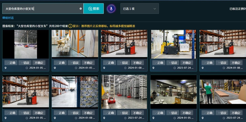 智能系统的一大特征是可以根据环境和需求的变化快速适配。传统的机器学习模型面对新的算法任务,需重新收集数据、训练模型,至少要1-3个月。依图天问4.0升级了预训练模型,可实现1分钟内对极少样本的新算法进行冷启动,1小时内完成在线标注训练,1天内快速部署上线。通过日常工作过程中快速积累的数据飞轮,操作人员每天花几分钟对齐数据、简单点击对错,几天时间就可让算法达到超过90%的准确率,展现出前所未有的智能化和灵活性,充分满足业务系统的敏捷性和管理的时效性。