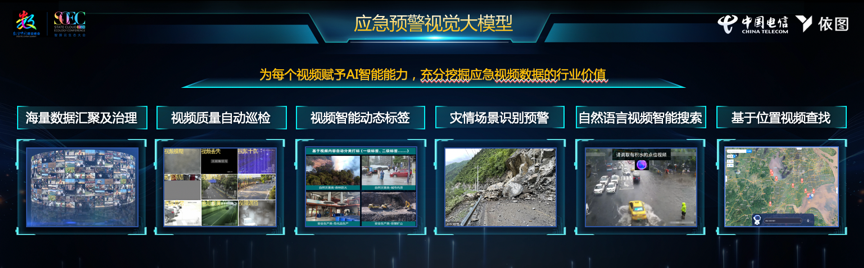 视频监测预警在实际应急应用中面临多源海量应急视频数据检索难度大;训练样本难获取;识别能力单一,定制周期长,成本高等诸多难点,此次由中国电信与依图科技联合打造的应急预警视觉大模型,充分发挥双方优势能力,体现出强大的实战应用能力: