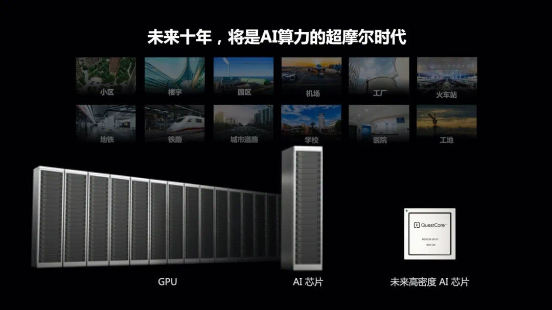 A few years ago, intelligent computing needed for urban management required more than a dozen cabinets to provide computing power support, requiring a lot of space, investment, and a lot of energy consumption; a year ago, due to the improvement of AI chip performance, it has been reduced from more than a dozen cabinets to one cabinet.